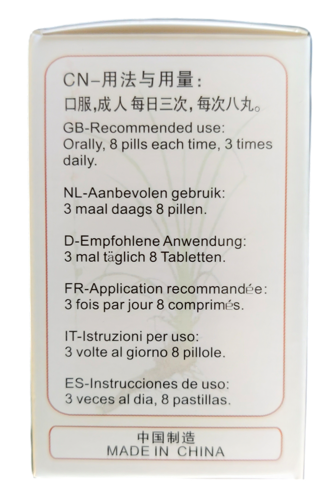 Ook deze formule is gemaakt van 100% pure authentieke Chinese kruiden van de hoogste kwaliteit. Traditionele bereidingsprocedures worden gecombineerd met moderne farmaceutische processen om de actieve ingrediënten uit de kruiden te extraheren en deze verder te concentreren tot pillen.