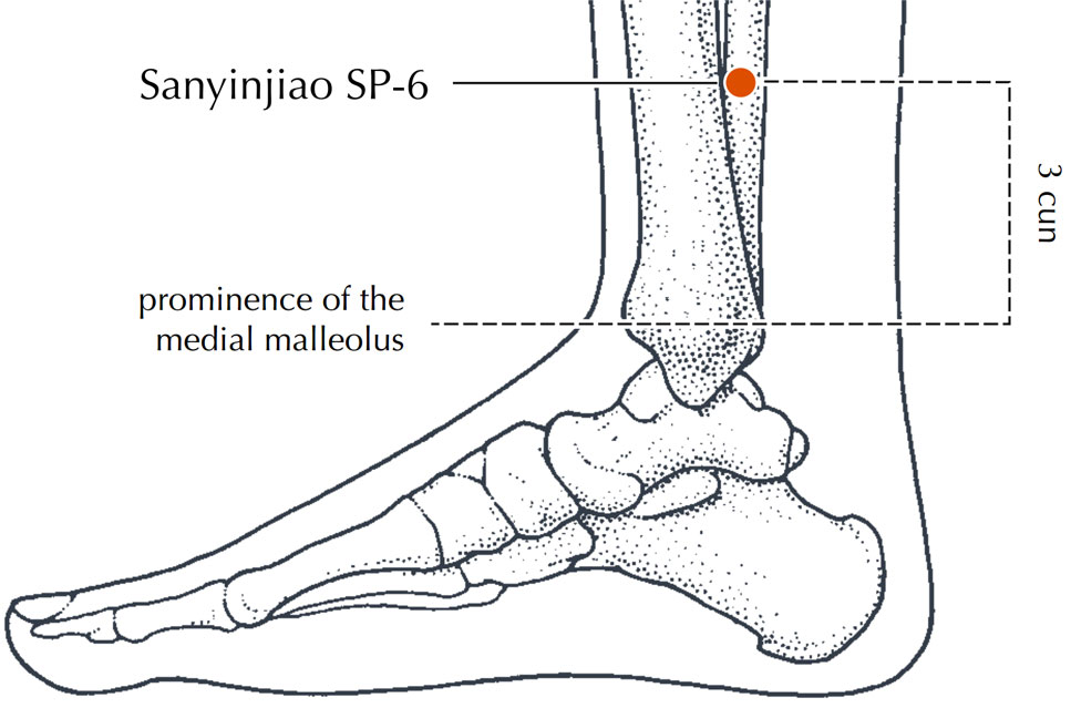 Het is een knooppunt van de drie Yin meridianen: Lever, milt en nier. Yin moet nachts sterker zijn dan Yang als je goed wilt slapen.